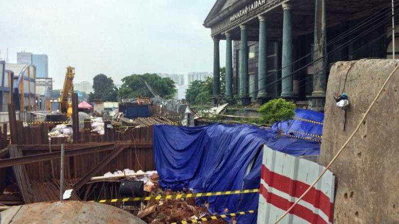 Tiang LRT yang roboh di depan Menara Saidah. (uzone.id)
