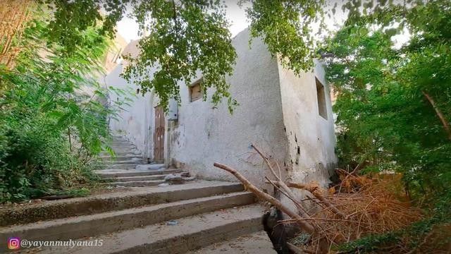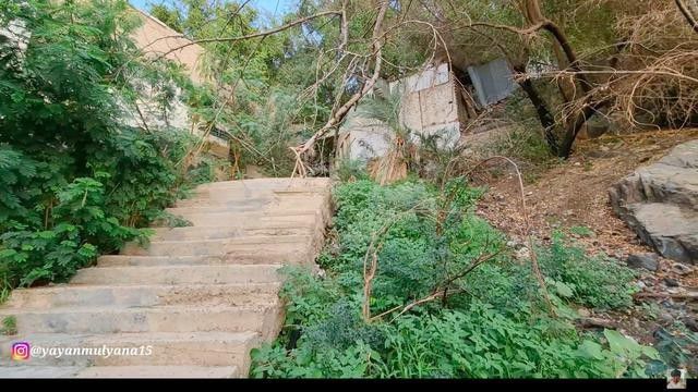 Tepat di belakang kampung jin, terdapat bukit dengan banyak anak tangga. Ada sisa-sisa batu bata dengan noda bekas kebakaran.