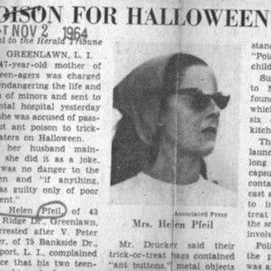 Tahun 1964, ada ibu rumah tangga asal Long Island yang ditangkap karena ia membagikan goody bags berisi biskuit anjing, mainan dan permen Halloween yang mengandung arsenik yang beracun.