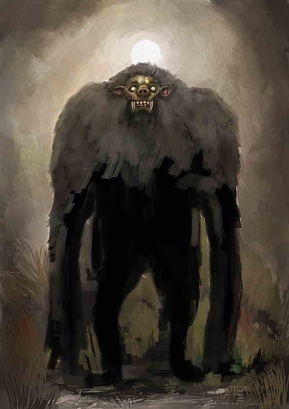 Makhluk itu bertanduk, di bagian bahu depannya terlihat seperti ada duri-durinya yang sebesar jari kelingkingku. Makhluk itu benar-benar menyeramkan. Bulunya sangat lebat dan hitam pekat.