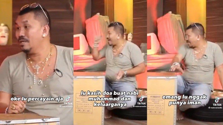 "Yang penting jari lu ini kena air di selang ya kan, lu bacain Al-Fatihah, lu bacain Ayat Kursi lu bacain An-Nas. Kalo gue kristen bacain doa bapa kami bacain ayat Alkitab, bershin udah. Kenapa harus manggil orang, emang lu enggak punya iman, kok lu harus pakai lewat orang lain. Enggak dong," tandas Mongol Stres.