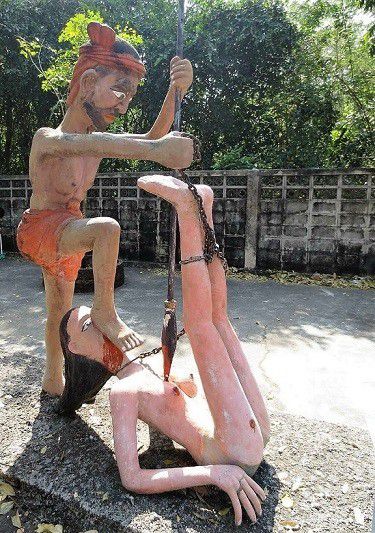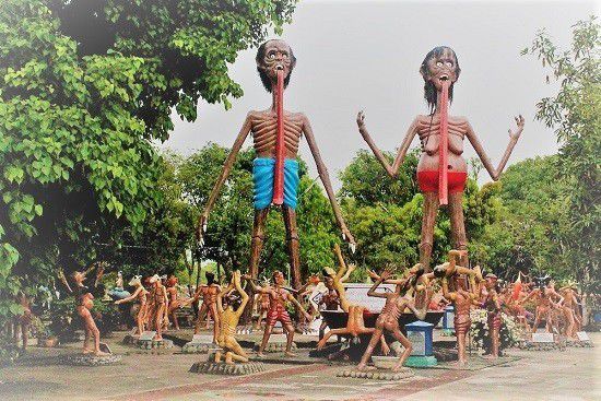 Ada dua ikon utama di Thailand, yaitu waria dan pantainya yang indah. Tapi apa jadinya kalau Thailand menyediakan wisata horor? Thailand punya tujuan wisata yang bikin horor siapa saja yang datang. Di sini banyak banget ilustrasi neraka yang seram, kejam, dan horor.
