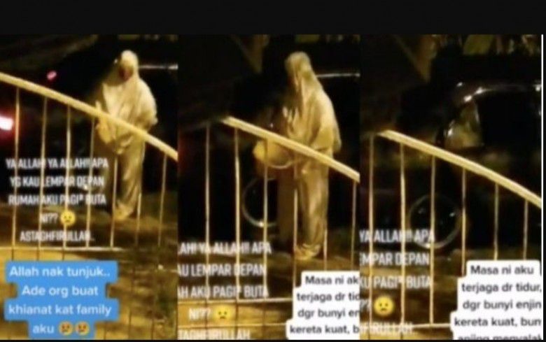 Melalui video yang diunggah oleh pengguna TikTok yang dikenal sebagai Ana, ia menunjukkan seorang perempuan berpakaian putih sedang menaburkan sesuatu di depan rumahnya di pukul 2 pagi.