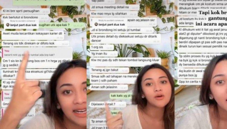"Terus katanya dia, bisa kalau takut, emang aku mau ngapain? Kan aku mau nge-mc ngapain aku takut? Sudah mulai agak janggal ya, terus dia mau naikkin budget nge-mc satu jam Rp 10 juta. Tergiur nggak sih? Ya zaman sekarang satu jam dibayar Rp 10 juta. Siapa yang nggak mau? Tapi kok brondong merangkak dan digantung? Ini acara apa sih woy?" lanjutnya lagi.