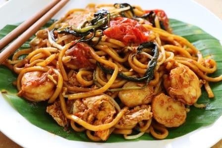 Masukkan mie, kemudian aduk-aduk hingga bumbu meresap. Sebelum diangkat, masukkan daun bawang perai dan tomat, kemudian aduk rata.