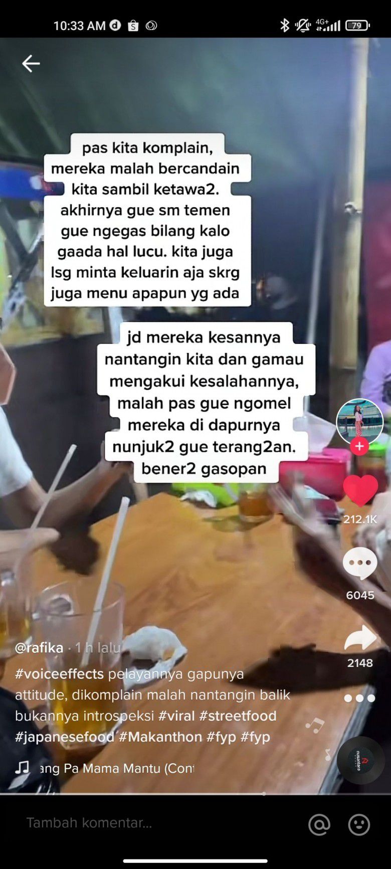 Karena selalu ramai, para pengunjung pun rela untuk mengantre lama agar bisa makan. Lalu, pengguna akun TikTok @rafika menceritakan pengalamannya saat hendak makan di warung tersebut. Tapi, bukannya menceritakan pengalaman positif, dirinya malah mengatakan buruknya pelayanan dari warung tersebut.