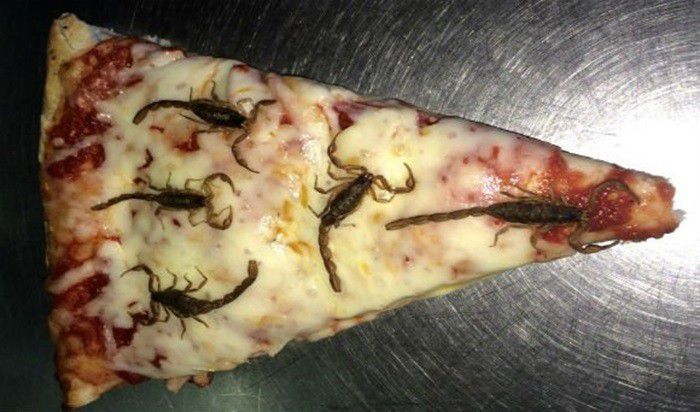 Daerah Calgary, Kanada memiliki makanan ikonik berupa pizza yang disajikan dengan topping kalajengking utuh. Menurut banyak orang di sana, rasa pizza kalajengking ini sangat enak dengan tekstur kalajengking yang renyah.