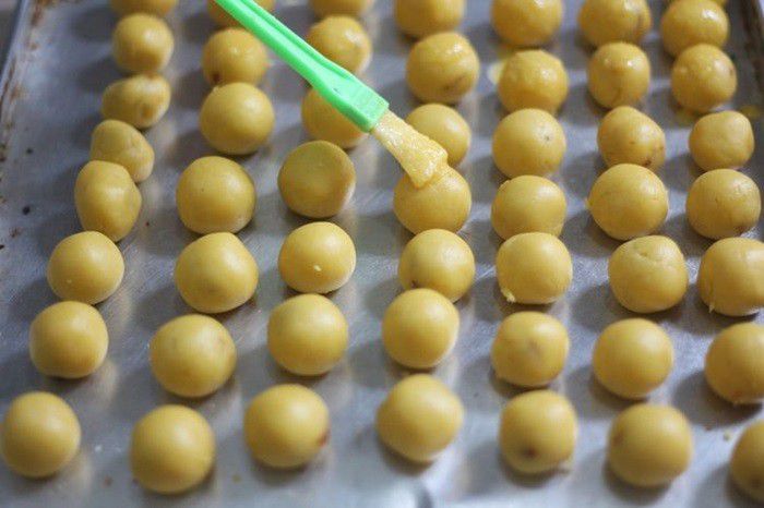 Nastar yang cantik adalah yang berwarna kuning keemasan dan terlihat mengkilap. Karena itu, olesi lapisan kue nastar dengan dua bahan, yakni telur dan minyak. Disarankan untuk mengolesinya sebanyak dua kali. Jangan poles nastar setelah dibulatkan.