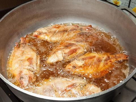 Saat memasukkan ikan ke dalam wajan, pastikan minyak telah panas. Memasukkan ikan ke dalam minyak yang masih hangat akan membuat ikan jadi lengket dan hancur.