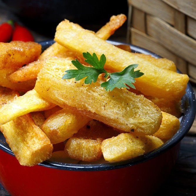 Kalau yang satu ini sih cemilan singkong yang paling basic ya? Singkong goreng yang udah dibumbuin terus bagian dalamnya super lembut tapi luarnya renyah tuh wow banget lho rasanya. Bikin nagih!