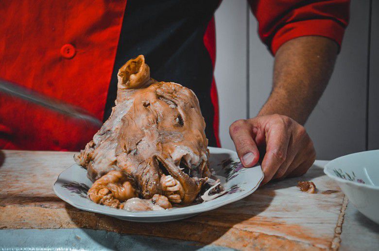 Makanan ini namanya kale pache, sup yang dibuat dari kepala dan kuku domba. Kadang, dimasak barengan otak, mata, dan lidah juga lho! Hidangan ini terkenal di Timur Tengah dan biasa dimakan untuk sarapan.