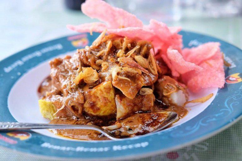 Kalo udah bosen sarapan nasi, kamu bisa beralih lontong kari. Kuah kari yang gurih bersantan, ditambah potongan lontong dan irisan daging tuh… petjahh enaknya!