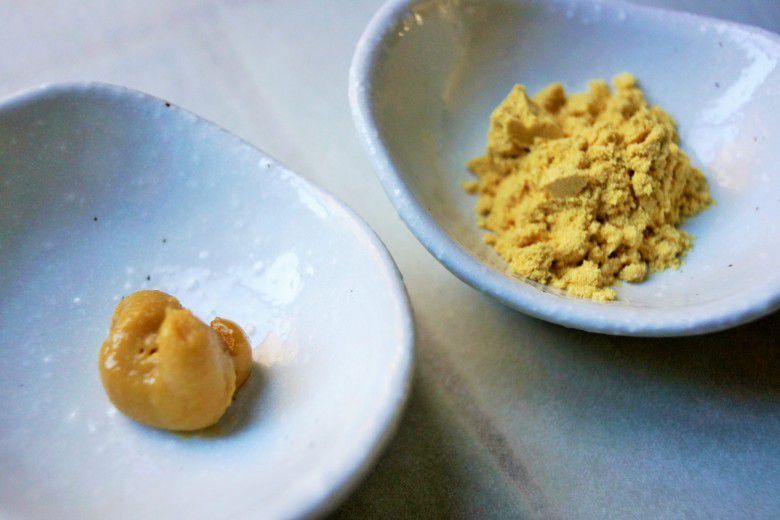 Karashi adalah mustard Jepang yang mirip dengan mustard Inggris panas, dan memiliki tingkat yang sama dengan wasabi. Di mana wasabi memiliki kesegaran, rasa karashi lebih gurih, dan meningkatkan rasa umami masakan. Kondimen ini disajikan bersama dengan berbagai makanan, khususnya, yakiton (sate babi panggang), oden (sejenis hot pot Jepang), buta no kakuni (babi rebus), dan natto (kacang kedelai yang difermentasi). Kamu bisa membelinya dalam bentuk pasta dan bubuk.