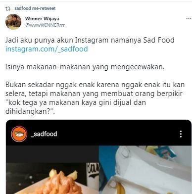 Postingan Pemilik Akun Instagram Sad Food (Twitter)
