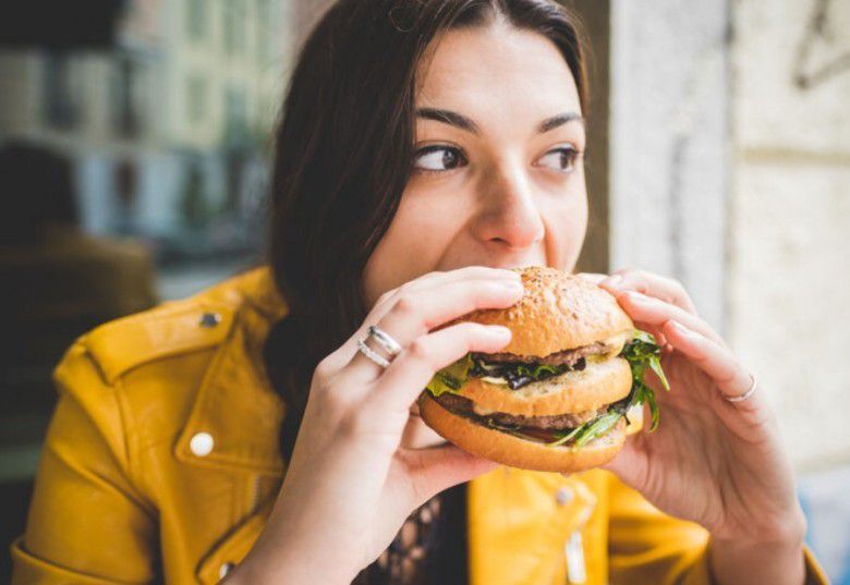 Cara makan burger yang benar adalah dengan cara membaliknya terlebih dulu. Baru deh dimakan.