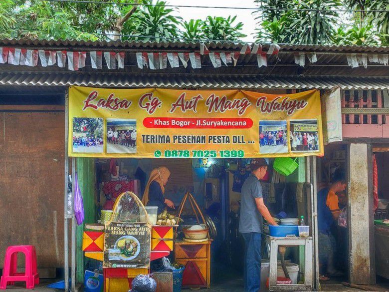 Rekomendasi terakhir ada Laksa Mang Wahyu Gang Aut yang sudah ada sejak tahun 1980-an. Laksa di sini memiliki tekstur kuah yang kental dengan warna kuning pekat. Untuk satu porsinya, laksa yang berada di Jl. Surya Kencana, Gang. Aut, RT.01/RW.05, Gudang, Kecamatan Bogor Tengah, Kota Bogor, Jawa Barat ini dibanderol dengan harga Rp15.000 – Rp20.000.