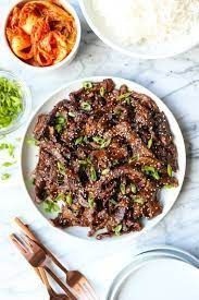 Ada yang pernah makan Bulgogi? Makanan asal Korea sayu ini berupa daging sapi yang diiris tipis dan dibumbui dengan kecap asin, gula, dan rempah lainnya sehingga memiliki rasa yang pekat.