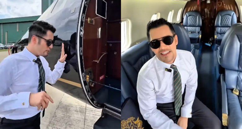 Dari unggahannya di Instagram, Aliff terlihat memperlihatkan seperti apa pesawat barunya. Dari video yang dibagikan, ia memperlihatkan situasi bagian luar dan dalam pesawat yang didominasi warna hitam dengan aksen emas.