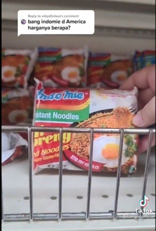 Seorang bule asal Amerika menunjukkan harga Indomie di Amerika (tiktok.com)