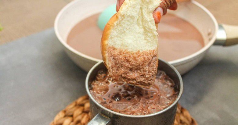 Menariknya lagi, es coklat viral ini biasa disantap dengan jajanan jadul seperti roti. Cara menikmati rotinya pun beragam. Bisa langsung dimakan atau roti tersebut dicelupkan ke dalam es coklatnya. Rasa manis dari roti dan es coklat itu akan memanjakan lidah kamu.