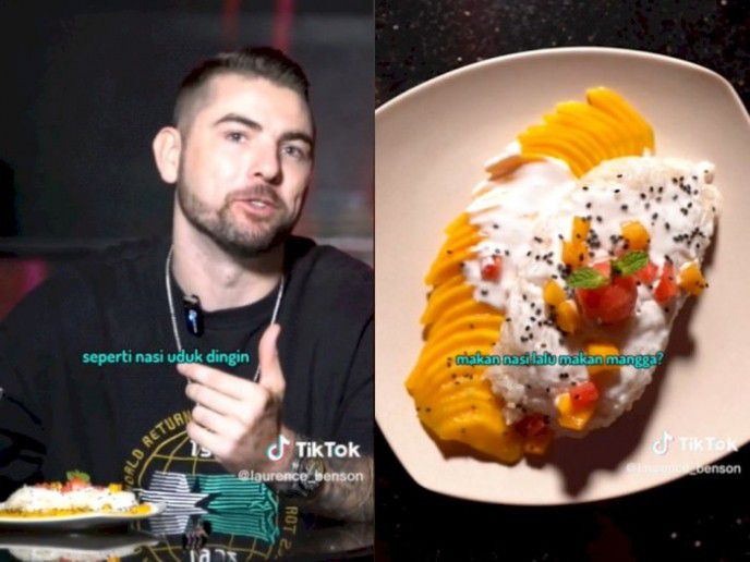 Mango sticky rice yang merupakan makanan Thailand yang tentunya berbeda dengan nasi uduk khas Indonesia. Namun tiba-tiba seorang pria asing atau bule membandingkan kedua makanan tersebut dengan menyebut mango sticky rice versi nasi uduk dingin.