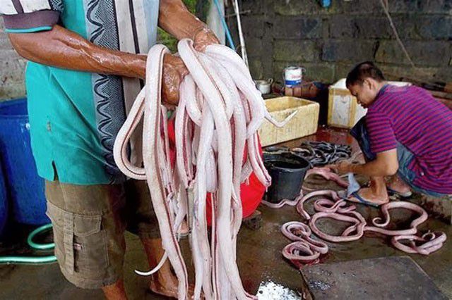 Ular beracun satu ini ternyata dikonsumsi oleh manusia karena dipercaya bisa mengobati diabetes dan penyakit kulit. Sementara empedu dan darahnya diyakini bisa menambah gairah seksual. Di tangerang, ada sate ular kobra yang dijual sejak tahun 2003.
