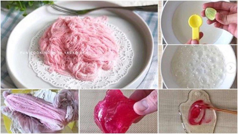 10. Balur adonan gula dengan tepung dan buat lubang di tengahnya. Tarik terus adonan sambil sesekali dilipat. Lakukan terus sampai adonan berubah seperti rambut. Rambut nenek pun siap disantap.