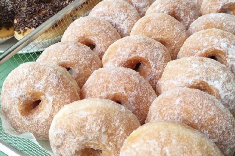 11. Jika suka, taburkan gula halus di atas donat yang sudah dingin atau celupkan donat dalam cokelat leleh dan beri mesis.