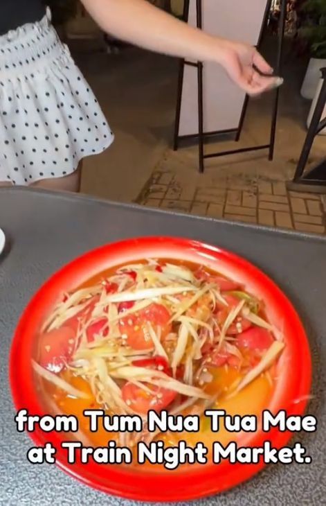 “Ia rela meninggalkan sorotan demi berjualan Som Tam dengan porsi besar di Train Night Market,” tulis akun @food_vendor dalam unggahannya.