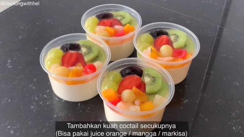 5. Selain kuah cocktail, kamu juga bisa menggantinya dengan juice jeruk, mangga ataupun markisa.