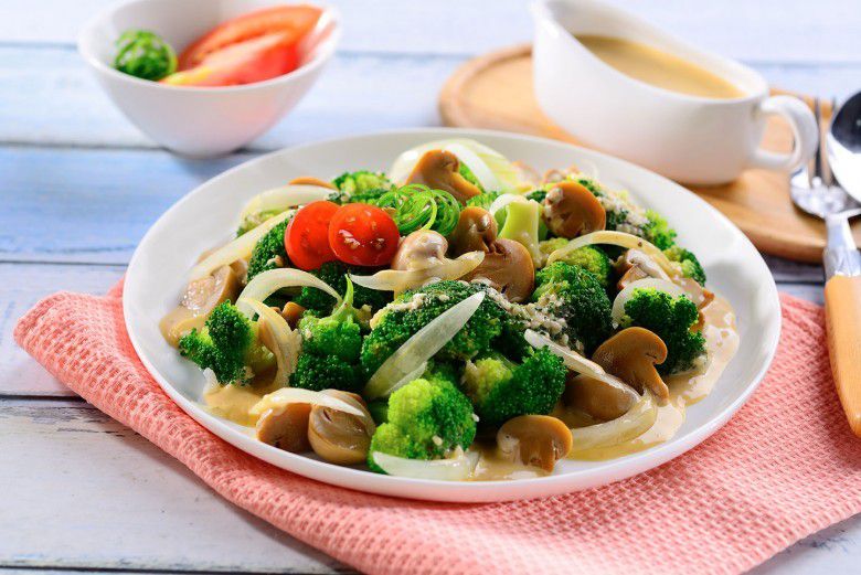 5. Aduk hingga semua bahan tercampur rata. Sajikan tumis ayam jamur dengan nasi hangat.