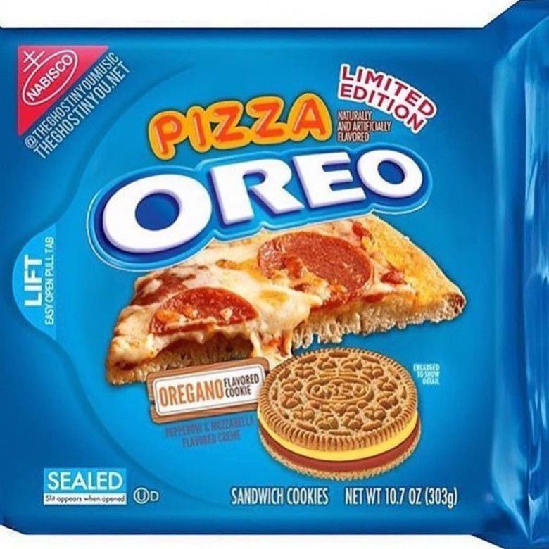 Oreo rasa pizza juga menarik nih! Perpaduan roti dengan daging dan keju tuh jadinya kayak apa ya kalau dijadiin Oreo. Bikin penasaran!
