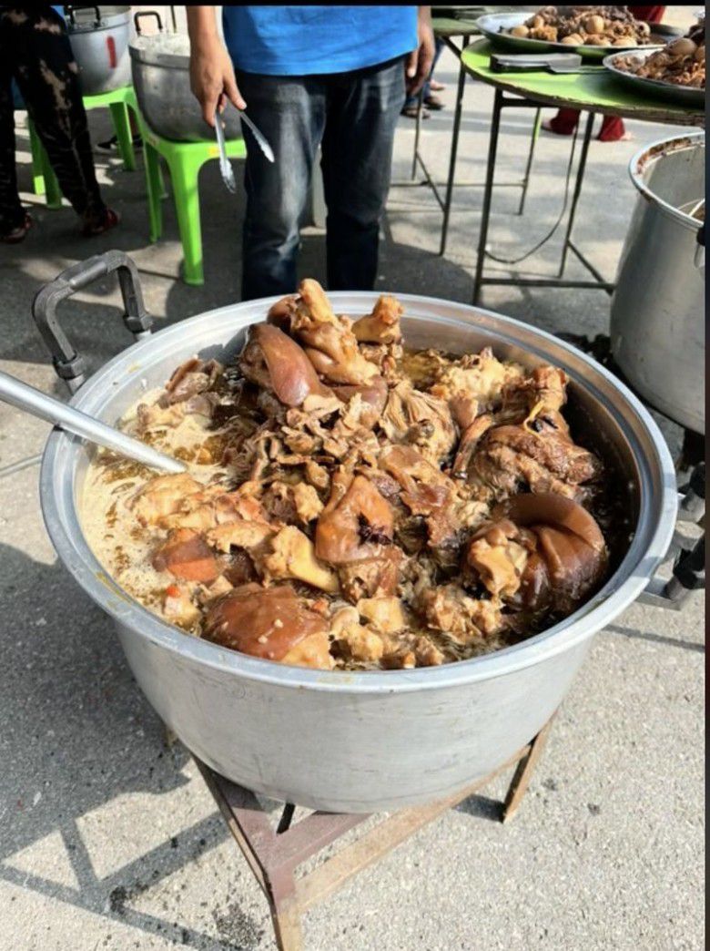 Dari unggahan video dengan akun bernama @unun.sohot, terlihat sang penjual sedang memasak potongan kaki babi dalam panci besar. Rencananya, hidangan tersebut akan disiapkan untuk acara keagamaan.