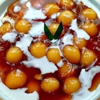 Kolak biji salak juga pasti banyak yang suka nih. Jadi si bulet-buletnya tuh bukan biji salak beneran ya, tapi terbuat dari adonan ubi dan tepung. Rasanya unik banget kayak boba versi lokal. Dicampur kuah santan dan gula merah sih the best!