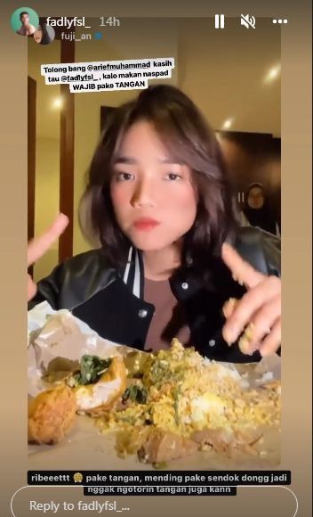 Selain Fadly Faisal, Fuji adiknya yang juga adik ipar almarhum Vanessa Angel mengatakan cara makan nasi padang yang nikmat adalah dengan pakai tangan. Dia pun meminta tolong Arief Muhammad untuk mengingatkan Fadly, kakaknya, agar makan nasi padang pakai tangan.