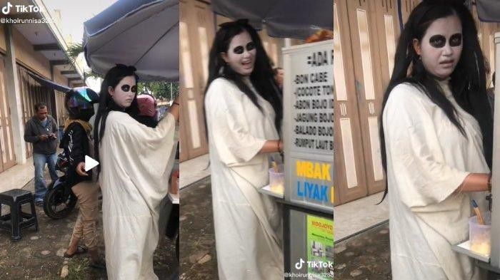 Viral seorang penjual papeda di Pekalongan pakai kostum kuntilanak (tiktok.com)