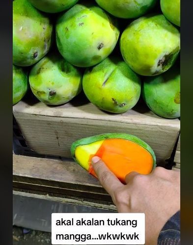Pedagang ini menipu buah mangga dengan plastik (via tiktok)