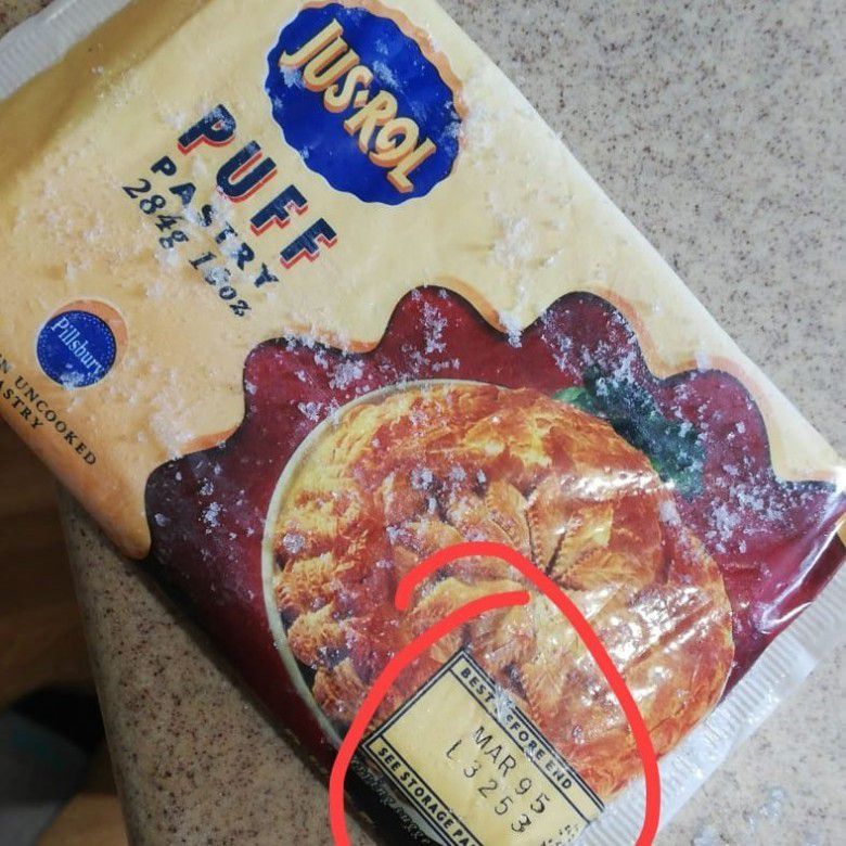 Temuan puff-pastry itu terjadi ketika perempuan itu lagi bersih-bersih kulkas miliknya. Nggak disangkan ternyata dia malah menemukan sebungkus puff-pastry. Padahal kemasan puff-pastry itu bertuliskan "Baik digunakan sebelum Maret '95"