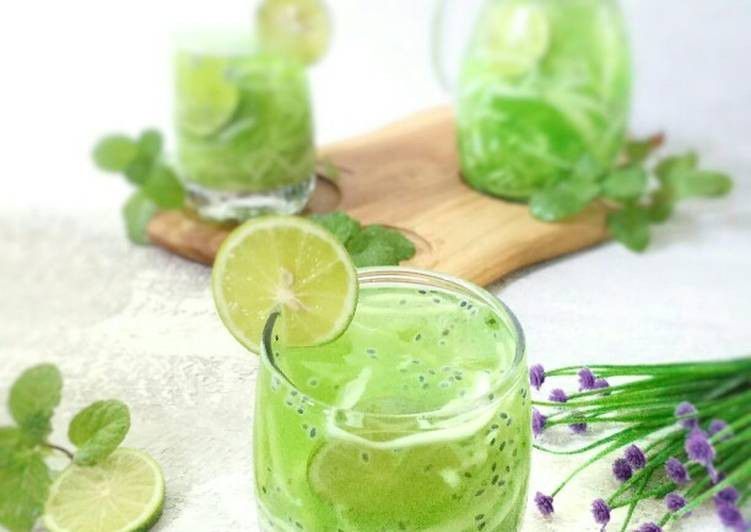 - Langkah terakhir adalah masukkan daging kelapa muda, melon, dan selasih.