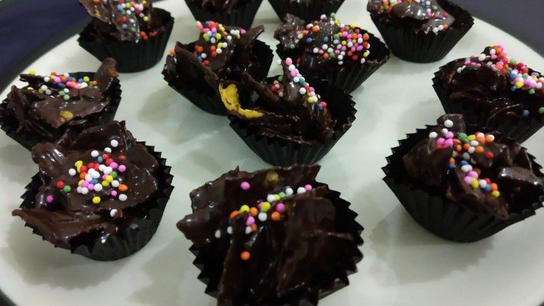 5. Jika sudah selesai semua, simpan dalam chiller kulkas sampai cokelat kembali set. Lalu masukkan dalam toples. Kue lebaran simpel nan lezat pun siap disajikan.