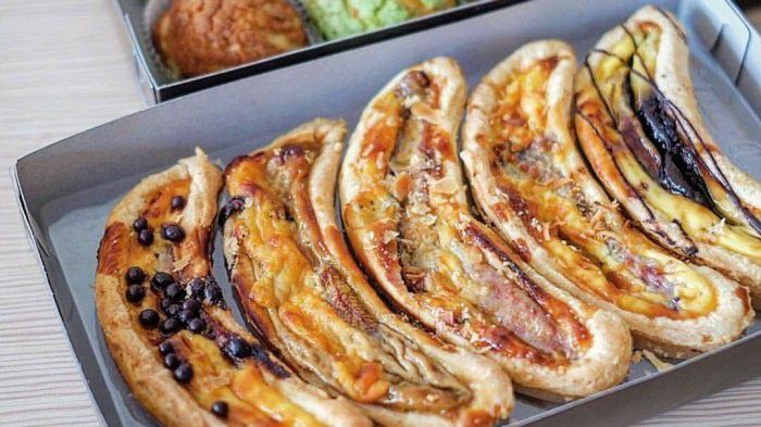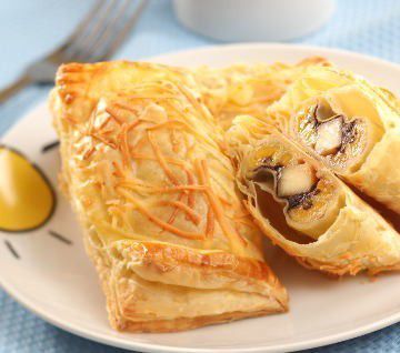 Gunakan aja adonan puff pastry dengan bahan utama pisang raja. Sebagai topping, tambahkan juga meisjes cokelat dan keju cheddar.