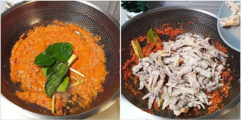 Setelah bumbu halus ditumis, masukkan ceker (facebook.com)