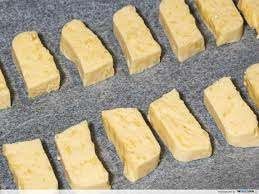 7. Keluarkan campuran padat dari mangkuk kaca dan potong menjadi ukuran sekali makan.