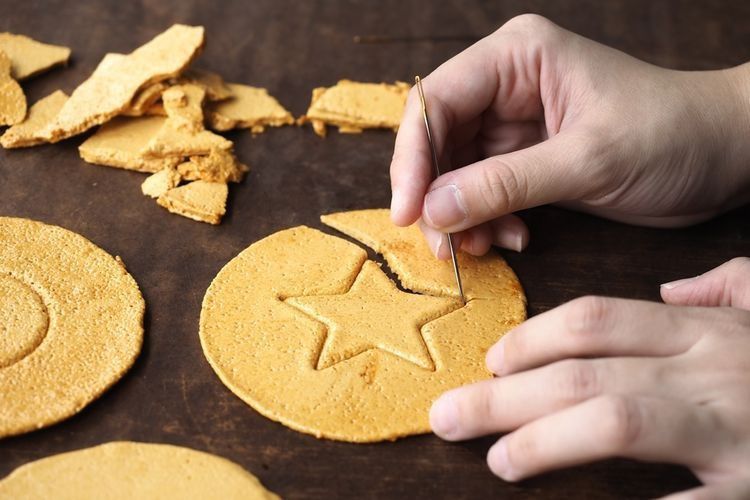 Sebelum adonan mengeras, bentuk adonan dengan cookie cutter.