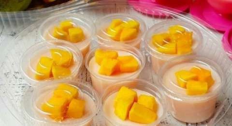 8. Waktu puding udah mengeras dan dingin, puding mangga siap disantap.