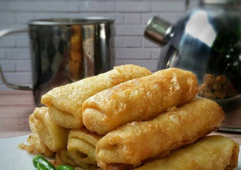 - Ambil satu kulit, beri isi secukupnya. Lipat berbentuk seperti amplop, gulung hingga ujung. Gunakan sisa adonan kulit untuk merekatkan sosis solo.