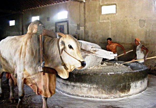 Sapi yang membantu menguleni adonan mie (food.detik.com)