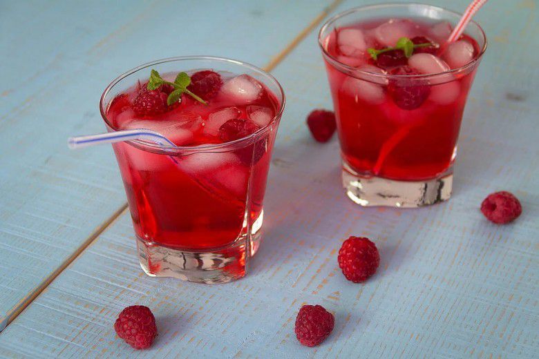 - Gabungkan air rebusan buah rasberi dengan rebusan teh yang sudah dibuat tadi dengan ke dalam satu wadah. Aduk hingga tercampur dan warnanya berubah menjadi agak pink. Tambahkan es batu secukupnya dan es teh rasberi siap disajikan untuk berbuka puasa.