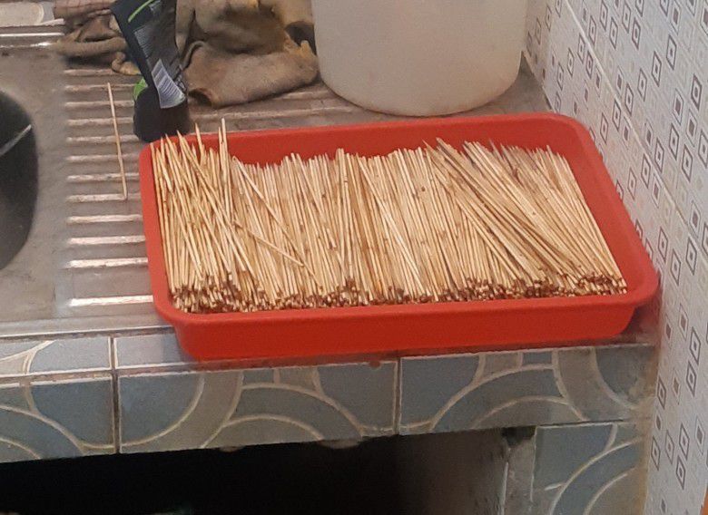 Hal tersebut bisa dilihat dari noda bekas daging yang menempel di tusukan. Ada pula sabun, baskom, dan beberapa alat pembersih di tempat yang dekat dengan wastafel tersebut.