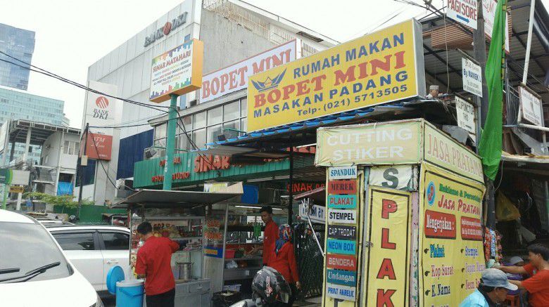 3. Bofet: Masakan khas minang, tempatnya lebih kecil dari ampera, namun rata-rata yg dijual adalah makanan khas minang yang selain nasi padang. Misalkan: bofet sate padang, ya yang dijual hanya menu sate padang dan kondimennya (kerupuk kulit, kerupuk sanjay bungkus kecil dll, serta minuman). Atau contoh lain bofet ketupat gulai tunjang, ya yang dijual hanya ketupat sayur dengan gulai tunjang beserta pelengkapnya, jangan berharap ada menu nasi padang disini.